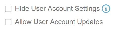 There are options to enable or disable user’s access to their account page, whether they can make changes to their account, as well as options to control whether they can see the account page at all.