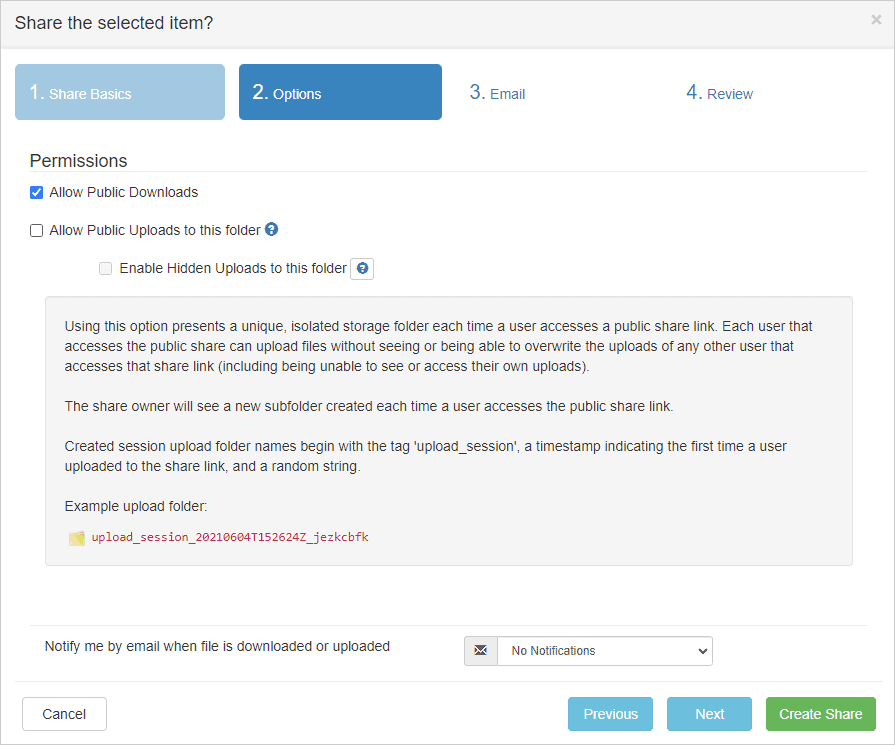 Advanced notification options ensure the sharer can be notified whenever a file has been uploaded or downloaded.