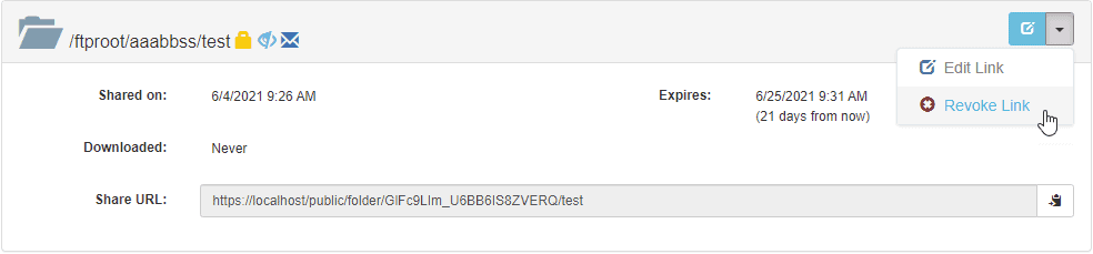 Users and administrators can revoke access to open public links at anytime through the Cerberus FTP Server web client or administrative UI.
